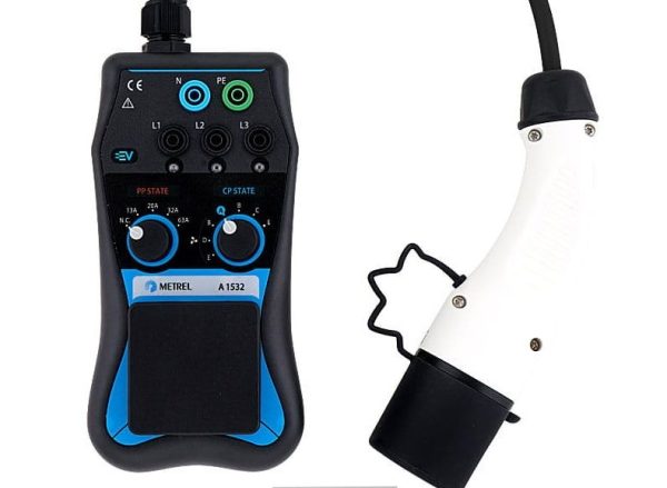 EVSE teszt adapter a Metrel-től, elektromos autó töltőállomások ellenőrzéséhez és karbantartásához.